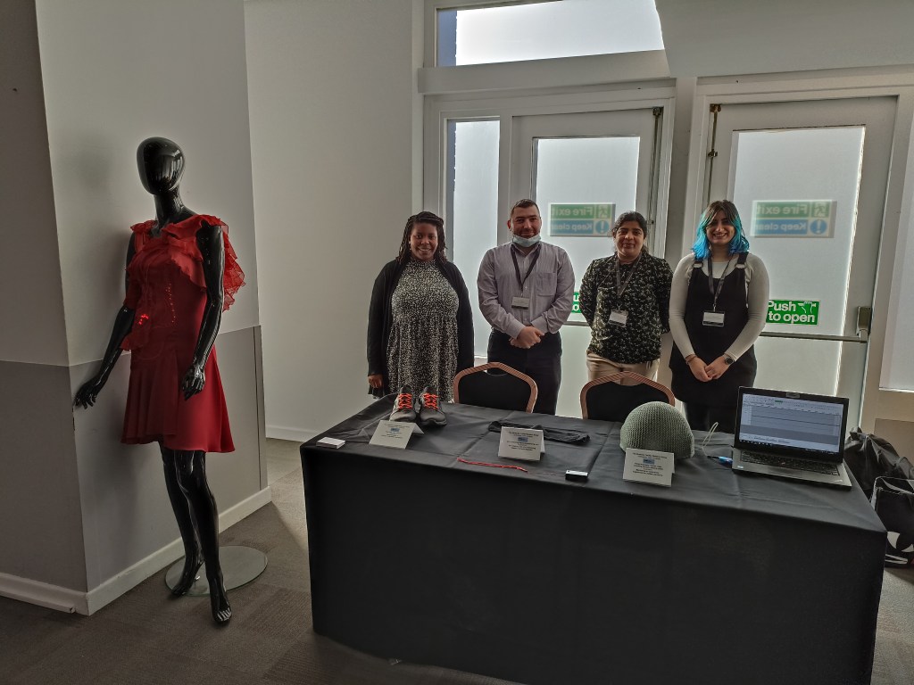 Members of the ATRG with the exhibition stand at the 3rd International Conference on the Challenges, Opportunities, Innovations and Applications in Electronic Textiles.